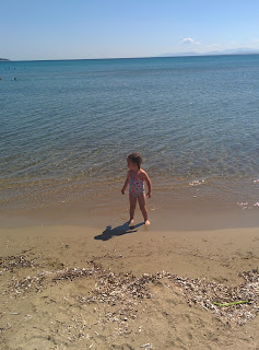 Sunday we decided to do our first Greek beach trip. We drove over Penteli Mountain (this is the mountain right behind us) and down the other side. The views were so amazing! How did we get so lucky???